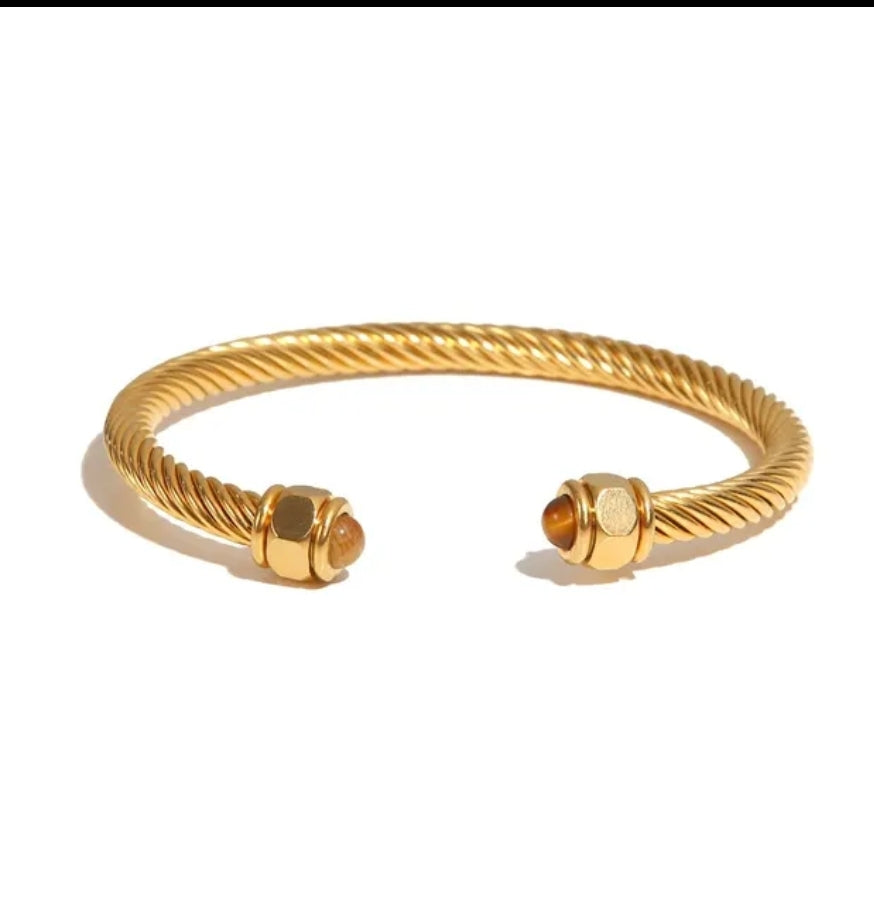 Emerald green stone cuff bangle and ring made in 18 karat gold plating with high grade Swarovski crystals and synthetic emerald stone