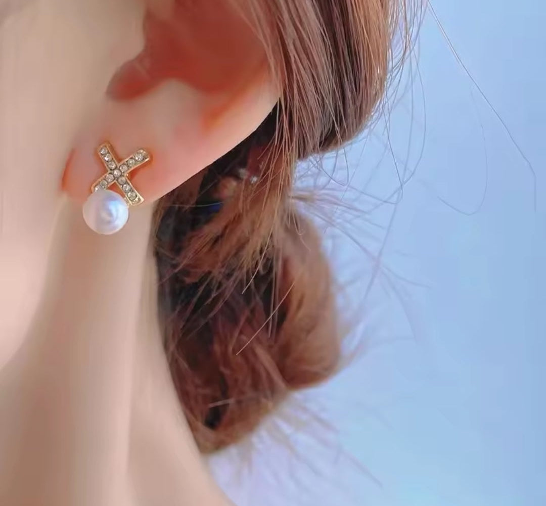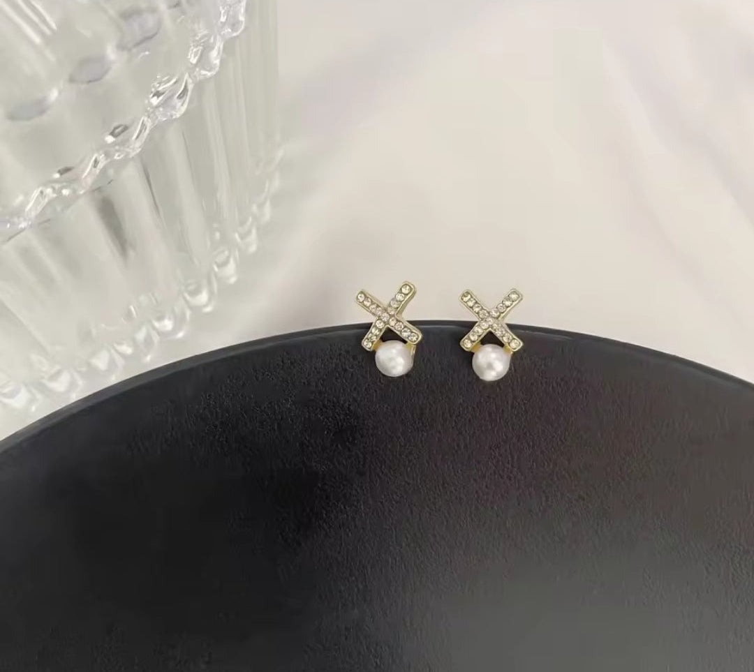 Pearl drop crisscross studs